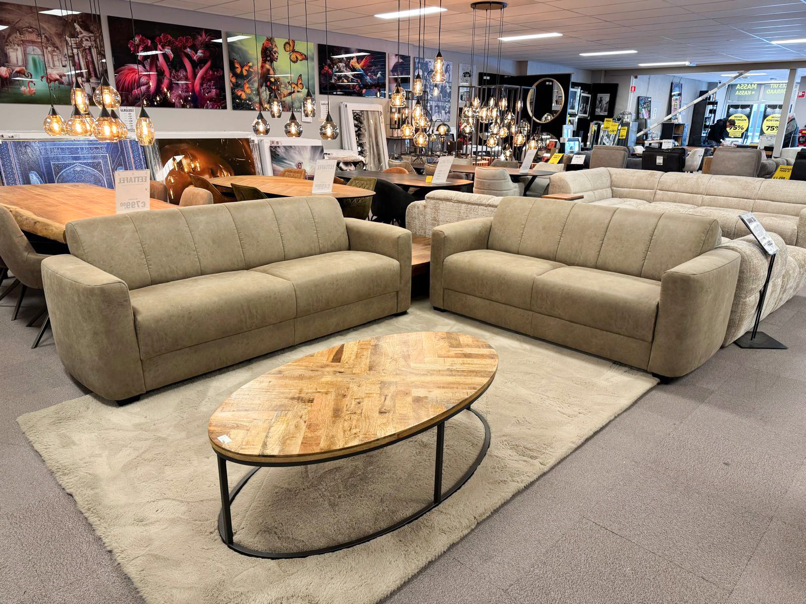 | Banken Boxsprings Fauteuils Eetkamerstoelen Eettafels |